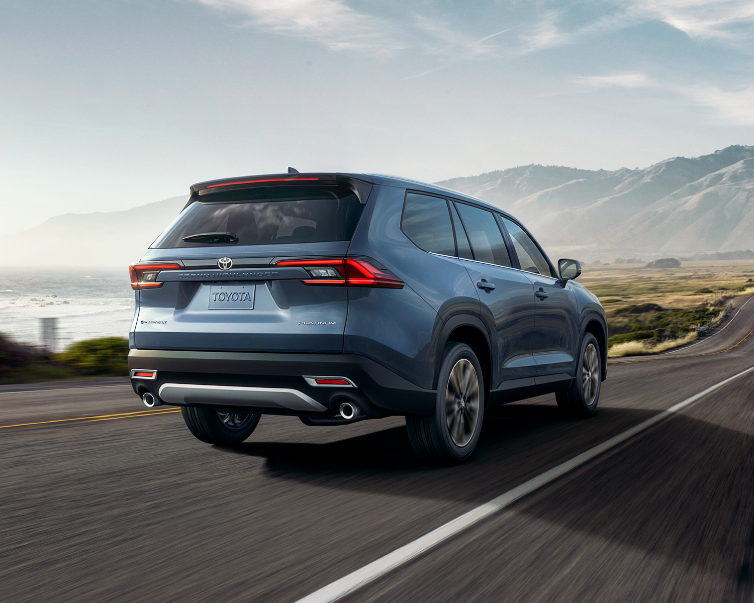 The Grand Highlander offers a distinctive and beautiful exterior design, coupled with a spacious interior. From the front, the vehicle showcases a trapezoidal, hammerhead front grille and available 20” wheels. The sophisticated design continues through to the rear, thanks to a sharp rear bumper. The Hybrid MAX powertrain variant takes it one step further with standard exposed dual exhaust tips. The exterior is beautiful yet functional. The side of the vehicle flows seamlessly from the doors through to the fenders to the front and rear wheels, expressing a simple yet dynamic-looking design.