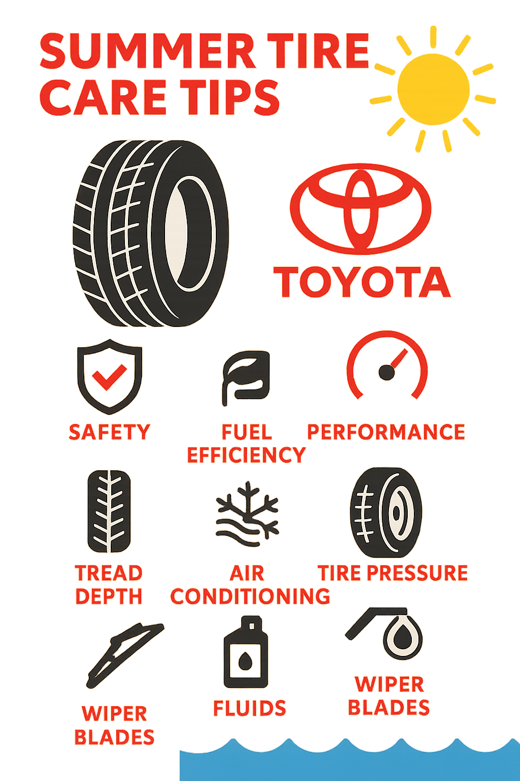 While tires are a top priority, a few other checks can help keep your Toyota running smoothly all summer: